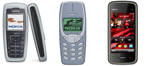 6,5,4: Nokia 2600 (trái) ra mắt năm 2004, bán được 135 triệu máy; 3310 (giữa) ra mắt năm 2000, bán được 136 triệu máy và 5230 ra mắt năm 2010, bán được 150 triệu máy.