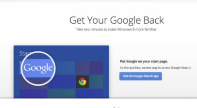 Google khởi động chiến dịch kêu gọi người dùng Windows 8 cài đặt gói ứng dụng Get Your Google Back gồm Search và Chrome giao diện Modern.